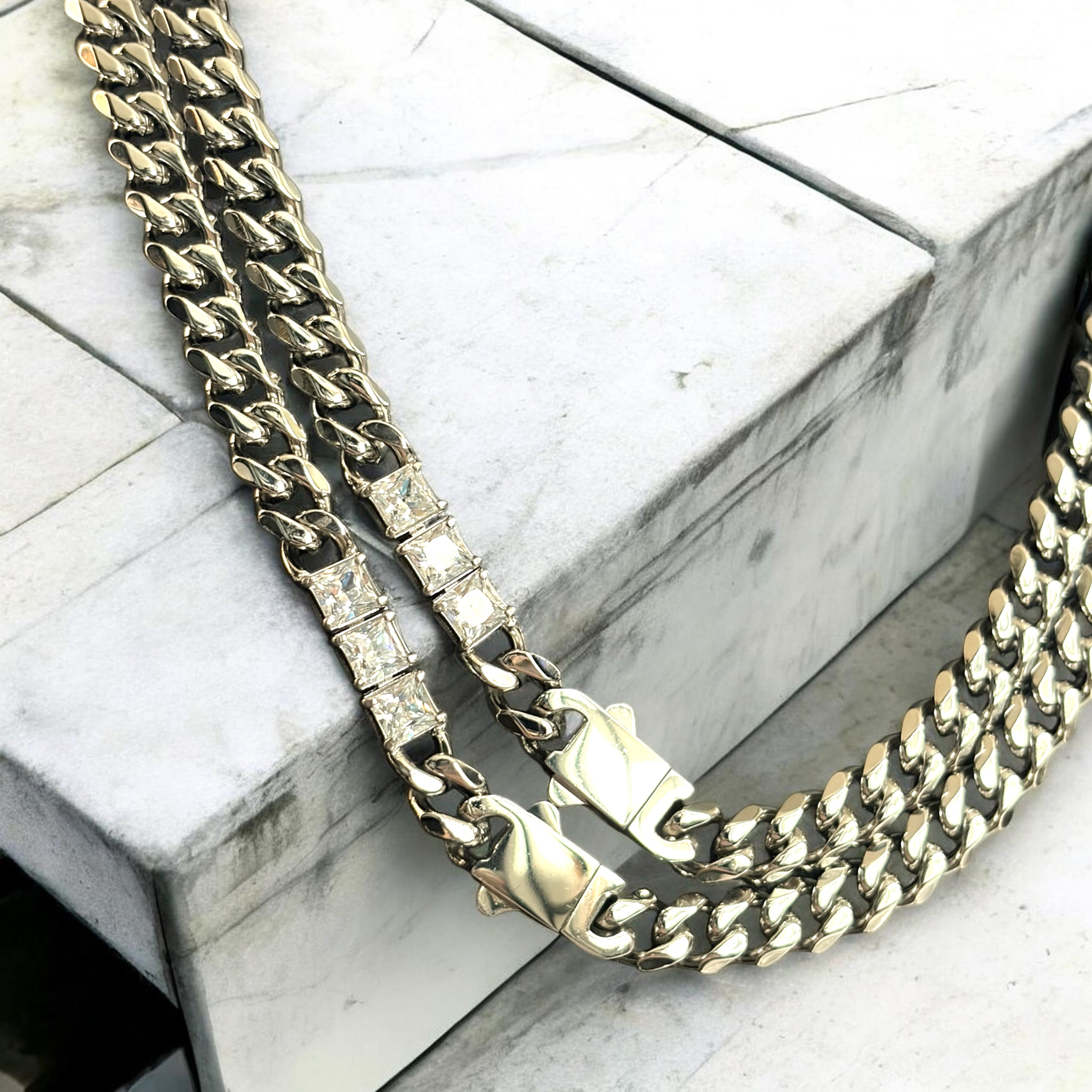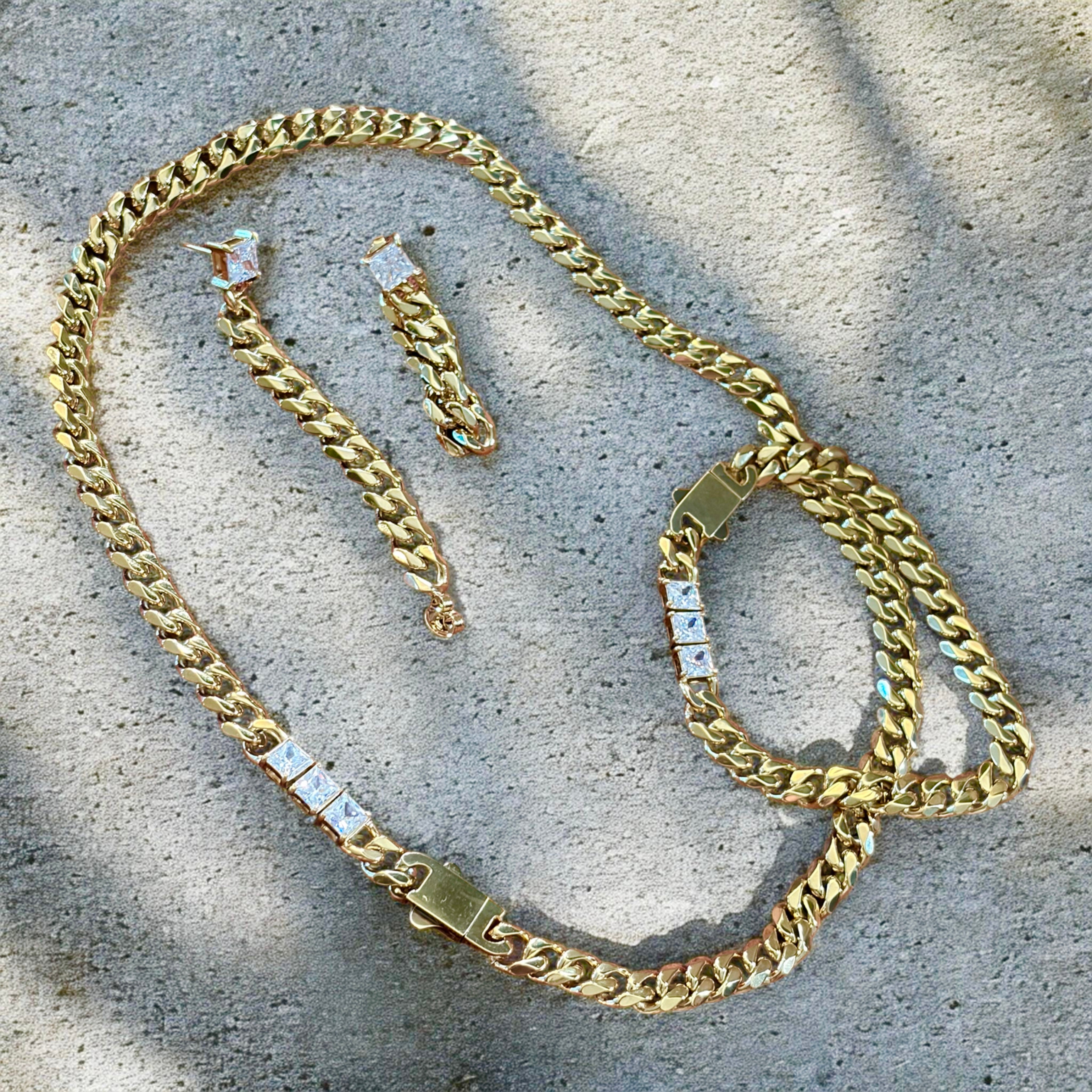 The Princess Collection - Cuban Curb Chain Princess Cut 3 Zircon Diamond (Sold Separately)